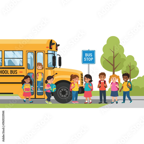 Školní scéna, plochá vektorová izolovaná ilustrace. Školní lekce, přestávka, autobus, studenti, děti s rodiči jít do třídy. Vzdělání, znalosti.