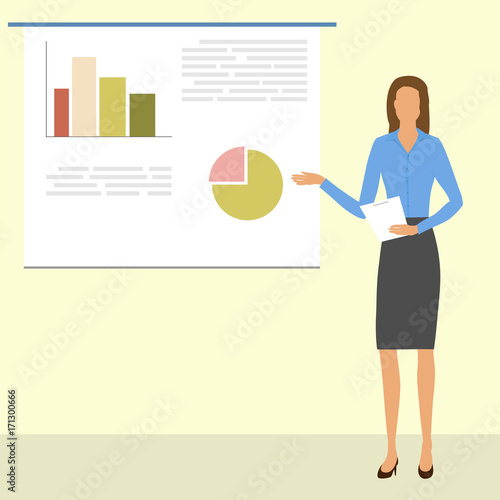 Vektorová ilustrace učitelky s ukazatelem. Školní lidé koncept plochý styl designový prvek, ikona izolované na bílém pozadí.