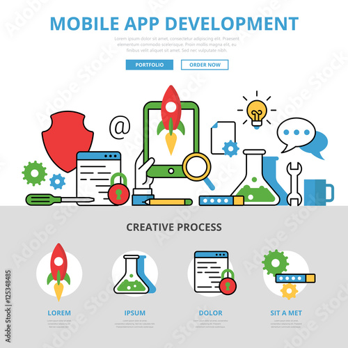 Science banner vektorové koncepty ve stylu čáry. Chemie a fyzika konstrukční prvky, symboly a ikony. Laboratorní pracovní prostor a vědecké vybavení. Vzdělání