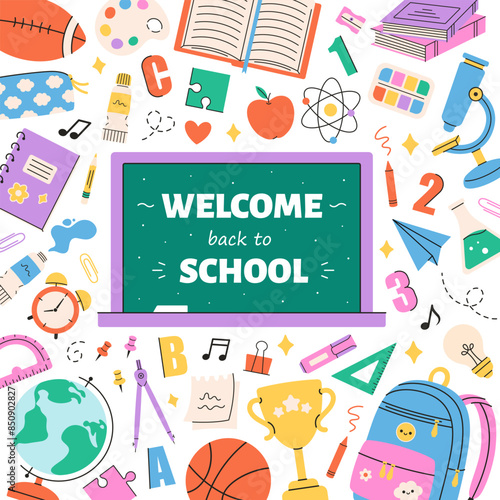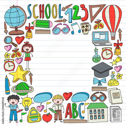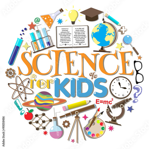 Věda pro děti. Školní symboly a designové prvky izolované na bílém pozadí. Vektorové ilustrace.