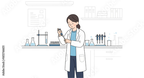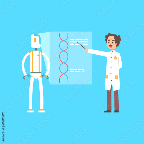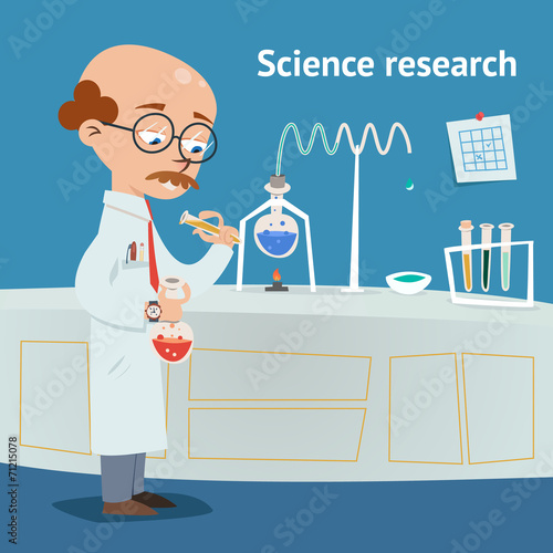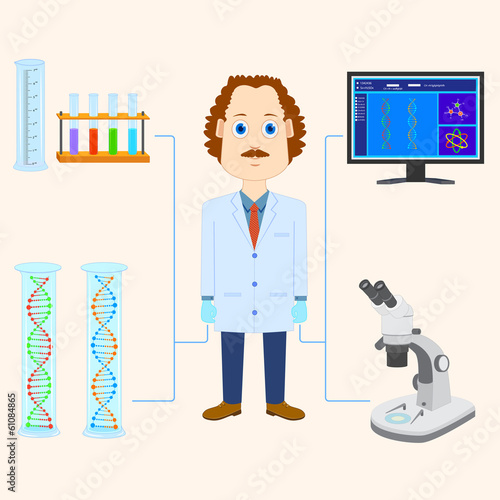 Vektorové ilustrace chemik muž drží stojan zkumavky. Věda lidé koncept plochý styl designový prvek, ikona izolované na bílém pozadí.