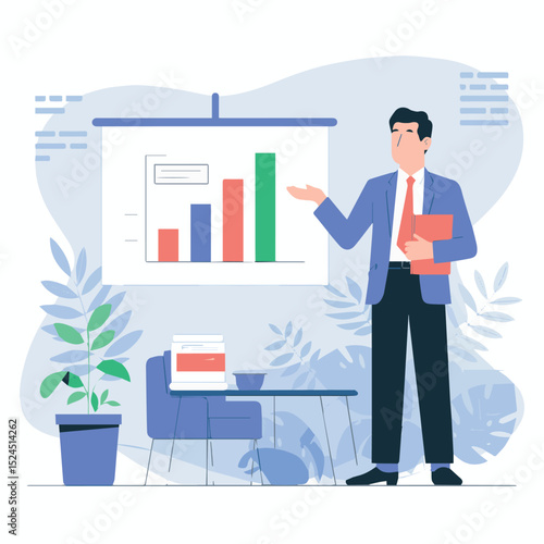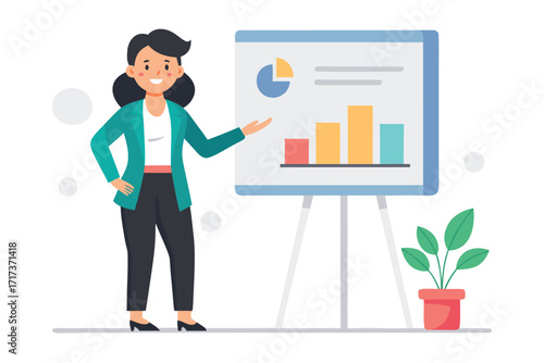 Žena stojící vedle laboratorní skříňky s laboratorními zkumavkami, baňky, složky na policích, vektorová plochá ilustrace izolovaná na bílém pozadí. Vědecký experiment, vzdělávání, vědecký výzkum.