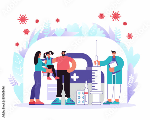 Genetika, genové inženýrství, farmaceutická biotechnologie, vektorová plochá ilustrace. Vědci pracující v biologii, genetické laboratoři. Vědecký výzkum, vzdělávání, genetická dna krevní test.