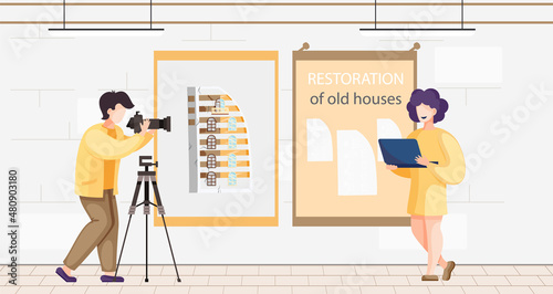 Vědci pracující ve vědecké laboratoři, flat vector illustration. Laboratorní pracovníci, vědci provádějící vědecké experimenty, studium genů, struktura dna. Laboratoř genetického výzkumu.