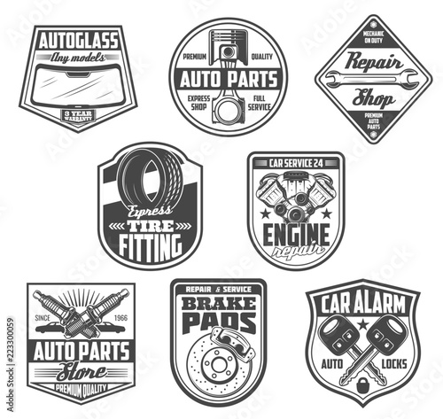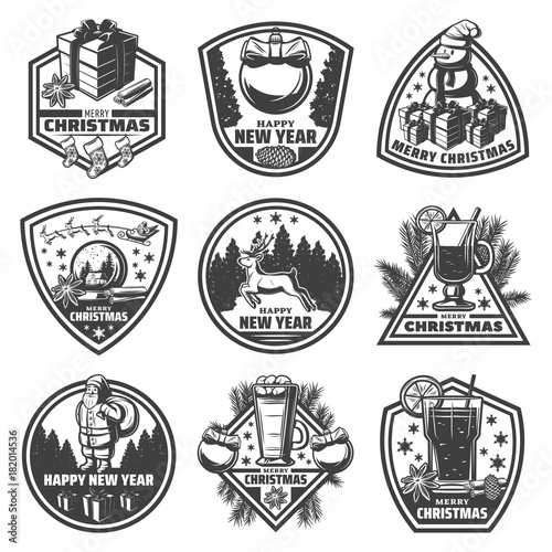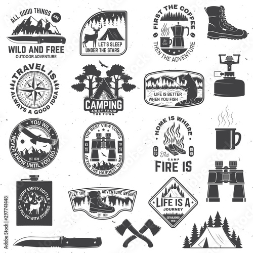 Potápění a spearfishing vintage logo, odznak, sada emblémů, vektorové monochromatické ilustrace. Škola hlubokého potápění, klub, obchod černé štítky izolovaných na bílém pozadí. Podvodní dobrodružství.
