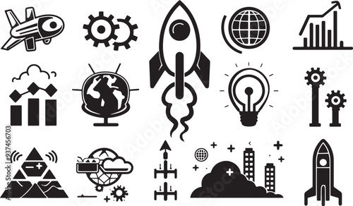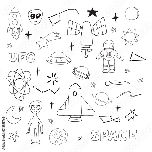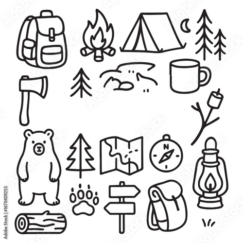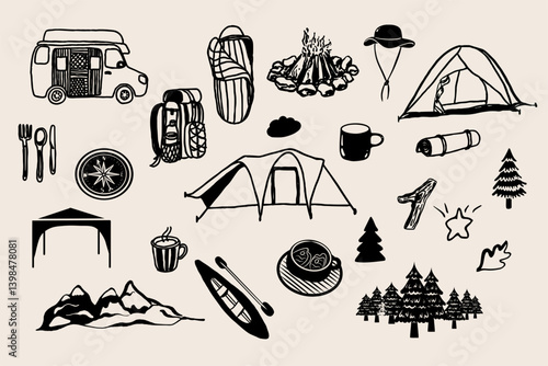 Potápění, šnorchlování vybavení a gear set, vektorové izolované ilustrace. Černobílý potápěč, potápěčský oblek, maska, ploutve, kyslíková nádrž, aqualung, šnorchl, mořští živočichové atd.