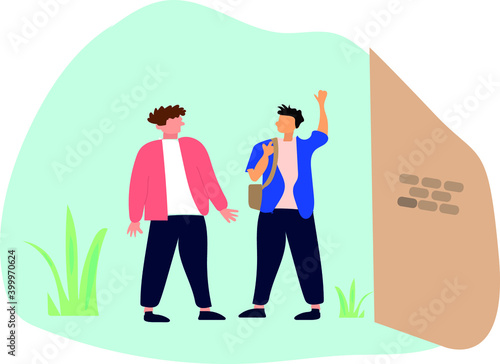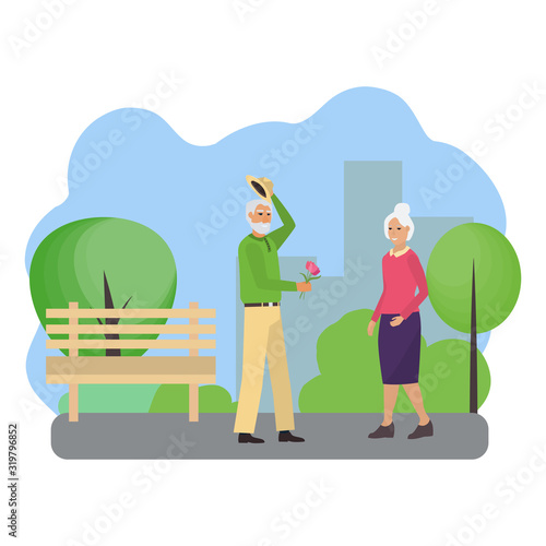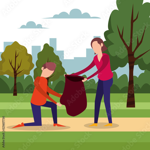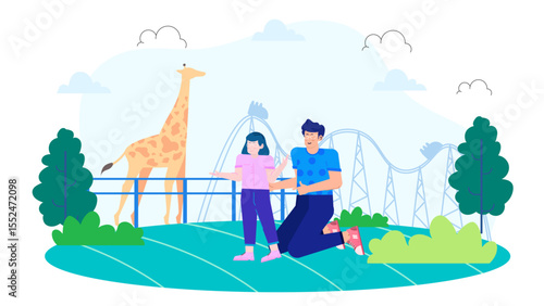 Mladý muž sochař vyřezávání sochy ženy v parku pomocí dláta a kladiva. Vektorové ilustrace v plochém stylu. Craft hobby concept designový prvek.