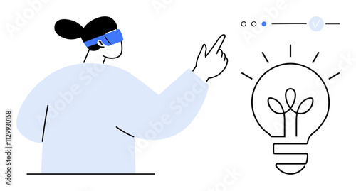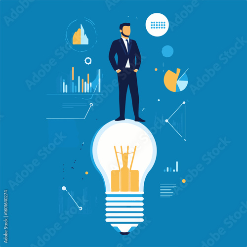 Myšlení mladý muž a žárovky, vektorové ploché styl designu ilustrace. Hledání nápadů, generování inovativních nápadů koncept pro web banner, webové stránky atd.