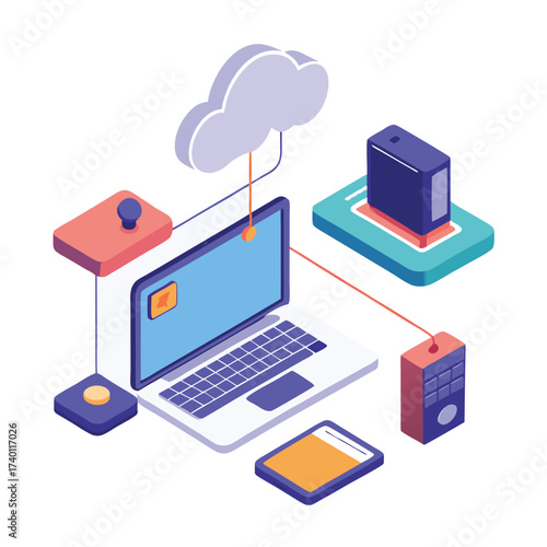 Vektor bezpečného cloudového úložiště dat. Isometric internet network service technology, informační databáze bezpečný přístup ikona izolovaných na bílém pozadí