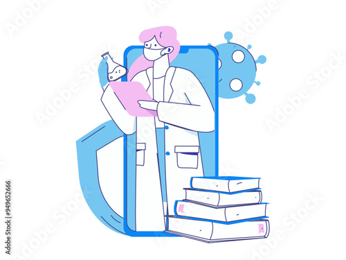 Dvě mikro mužské postavy uvedení lékařské masky na obrovský muž tvář, vektorové ploché ilustrace. Bezpečnost a zabezpečení, osobní zdraví, ochrana obličeje, koronavirus prevence a ochrana nemocí Covid-19