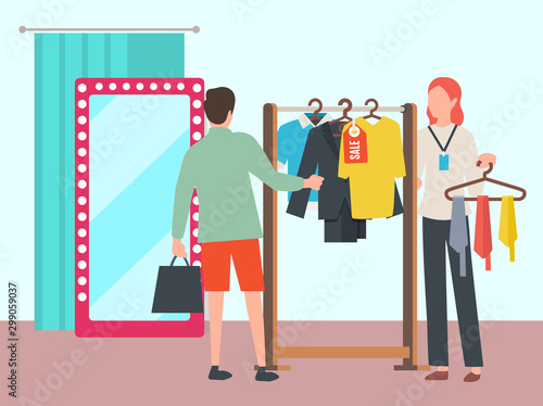 Vektorová ilustrace profesionálního tatéra a jeho klienta při výběru tetovacího náčrtu. Tattoo studio plochý styl designový prvek.