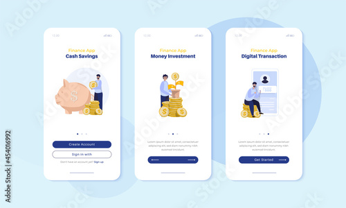 Samoobslužná mobilní aplikace onboarding obrazovky. Menu banner vektorová šablona pro vývoj webových stránek a aplikací. Samoobslužná pokladna supermarketu, restaurace rychlého občerstvení a samoobslužné kiosky kina.