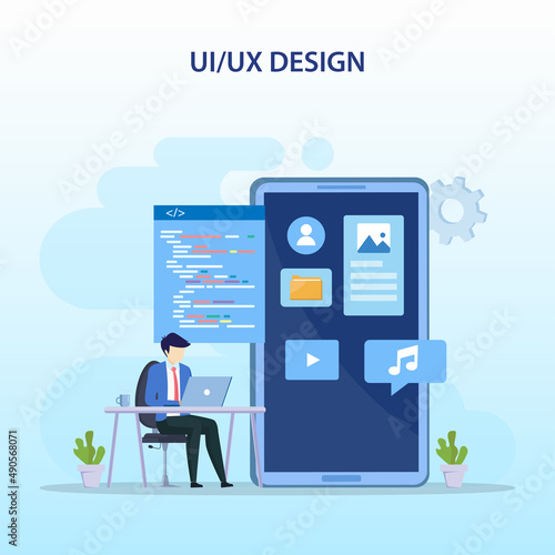 Vektorová ilustrace velkého smartphonu s portrétem ženy na obrazovce, lidé, kteří používají selfie pro webové stránky sociálních sítí pomocí mobilních telefonů. Koncept aplikace Selfie photo pro webový banner, webovou stránku atd.