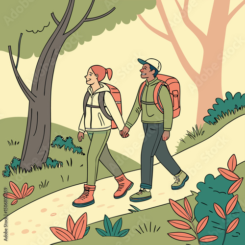 Senior pár cvičení v parku. Zdravý důchodový život koncept vektorové ilustrace. Podzimní outdoorová aktivita pro starší lidi.