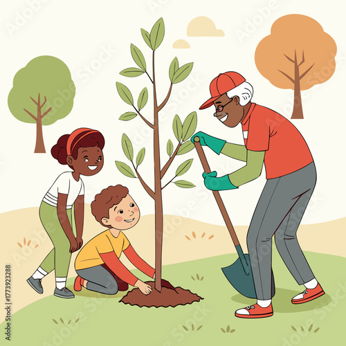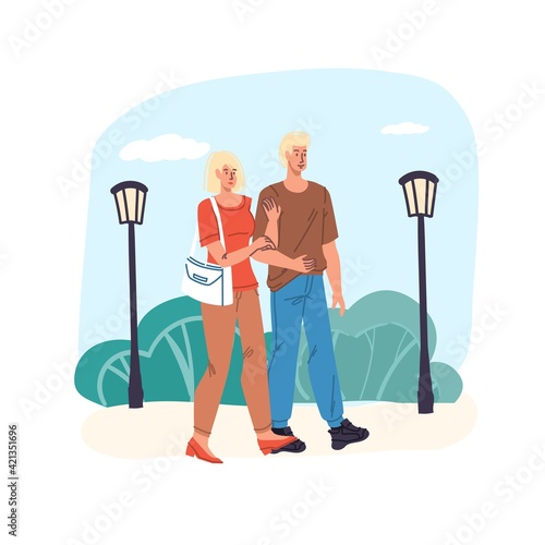 Senior pár cvičení v parku. Zdravý důchodový život koncept vektorové ilustrace. Podzimní outdoorová aktivita pro starší lidi.