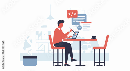 Senior žena surfování na internetu, chatování na sociálních sítích pomocí počítače, ploché vektorové ilustrace. Online komunikace. Starší lidé životní styl. Šťastný důchod. Starší online internetová aktivita.