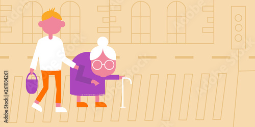 Vektorové ilustrace senior žena s kočkou sedí na pohovce u krbu v obývacím pokoji. Plochý styl designu.