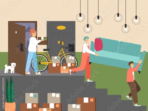 Starší lidé v pečovatelském domě, komunita asistovaného bydlení, ilustrace plochého vektoru. Starší dospělí pletení, kreslení obrázku, chůze s pečovatelem. Péče. Zdravý aktivní životní styl pro seniory