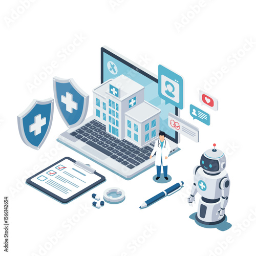 Serverové stojany, přenosný počítač a cloud se zámky, ploché vektorové izometrické ilustrace. VPN, virtuální privátní síť, Internet security.