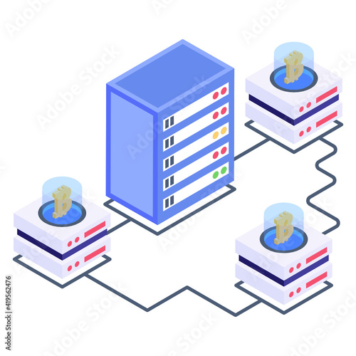 Serverové regály s cloudem, ploché vektorové izometrické ilustrace. Služba správy cloudového úložiště.