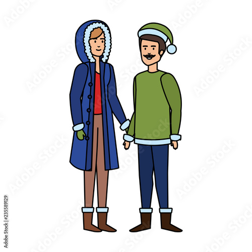 Sada lidí, kteří se připravují na oslavu zimních prázdnin. Chůze muž a žena drží vánoční strom, současné krabice a nákupy. Veselé Vánoce a Šťastný Nový Rok nakupování vektorové ilustrace