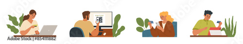 Sada lidí používajících kreditní kartu, moderní digitální zařízení pro online platby, nakupování na internetu, bezdrátový finanční převod prostřednictvím aplikace mobilního bankovnictví vektorové ilustrace