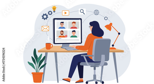 Švadlena šití na elektrickém šicím stroji, vektorová plochá ilustrace izolovaná na bílém pozadí. Krejčovství, ateliér, oděvní továrna, módní šicí studio, zakázkové oblečení.