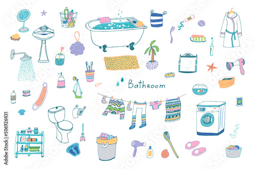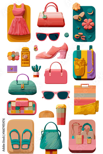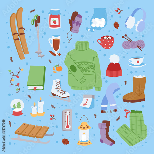 Šití položky ploché vektorové sady. Ručně vyráběné řemesla izolovaných na bílém pozadí. Šicí stroj, nitě, nůžky, figurína, páska, železo, špendlíky, ramínko na šaty a doplňky ilustrace