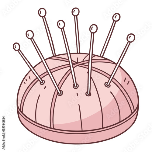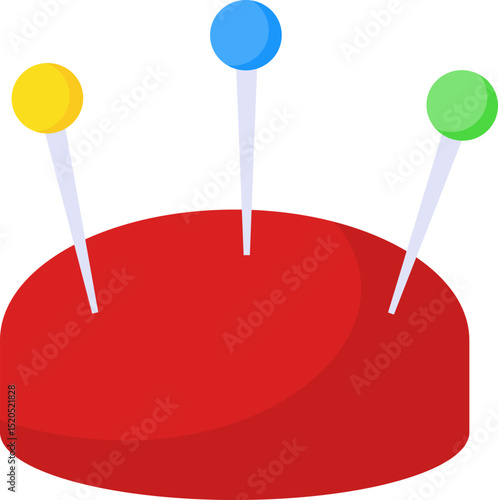 Šicí jehly a špendlíky v měkké polštář vektorové ikony izolovaných na bílém pozadí