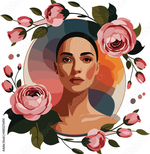 Vektorové ilustrace sexy pin up dívka s ovocem. Krásná glamour žena portrét v retro pop art komické stylu.