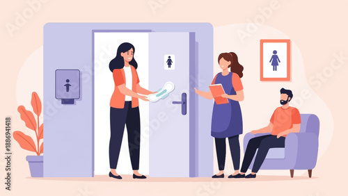 Prodavač pomáhá zákazníkovi vybrat si módní brýle na oči v optometrii store vector illustration. Mužský návštěvník při pohledu do zrcadla se snaží o módní vision příslušenství