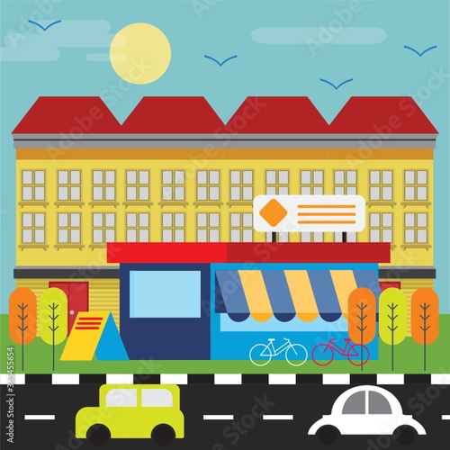 Obchod obchod street market s Apple juice sortiment vektorové ikony izolovaných na bílém pozadí