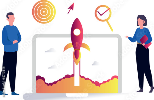 Mladá žena se snaží na červené šaty před zrcadlem, vektorové ploché ilustrace izolované na bílém pozadí. Nákupní koncept pro webový banner, webovou stránku atd.