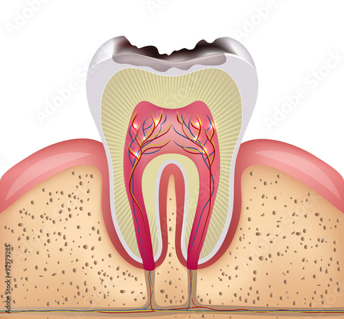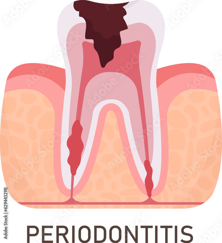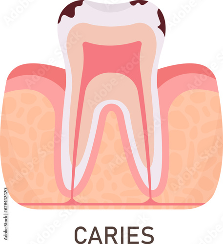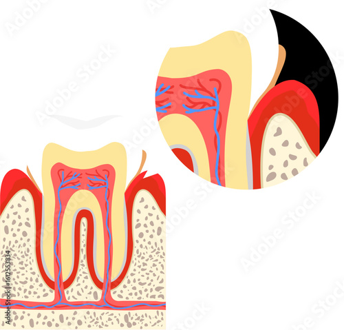 Nemocný zub zubní anatomie vektorové ikony izolovaných na bílém pozadí