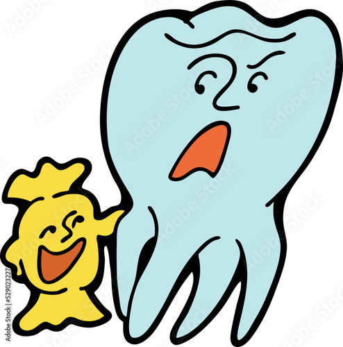 Nemocný zub s kazu díry vektorové ikony izolovaných na bílém pozadí