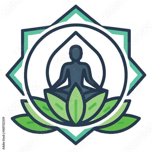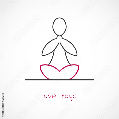 Silueta postava v lotosový květ vektoru. Logo jógy. Žena sedí pocit klidu a míru mozku ilustrace. Cvičení rovnováhy těla, ducha a mysli. Duchovní wellness cvičení