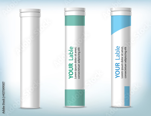 Silikonový tmel balení kontejner trubka s tryskou mock up set. Vektorové realistické ilustrace izolované na průhledném pozadí.