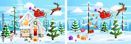 Lyžařské středisko s lyžaři, lanovkami, lyžařskými vleky, vektorová ilustrační sada. Zimní dovolená a sportovní aktivity. Zimní sezóna Horská krajina s Alpami chata. Horské lyže, snowboard, sjezdové tratě.