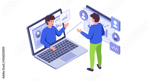 Lebka a zkřížené hnáty v e-mailové obálce na obrazovce notebooku, ploché vektorové izometrické ilustrace. Hacking mail, pirátství, počítačový virus, malware.