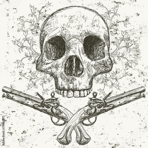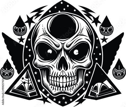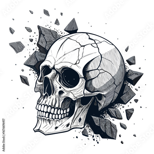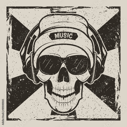 Vektorové ilustrace lidské lebky s mohawk poslech hudby pomocí sluchátek. Lebka hudba punk vintage grunge design pro tričko nebo tisk.