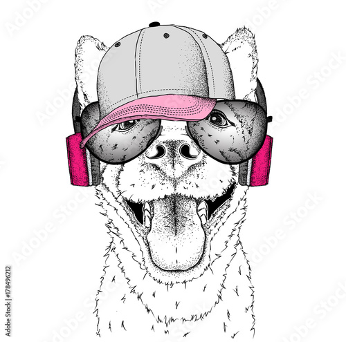 Vektorové ilustrace lidské lebky v klobouku, brýle a se sluchátky poslechu hudby. Lebka Hudba vintage grunge design pro tričko nebo tisk.