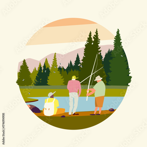 Vektorové ilustrace matky sáňkování její dcera. Panoráma. Zimní aktivity koncept designový prvek v plochém stylu