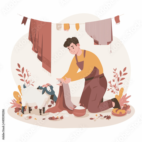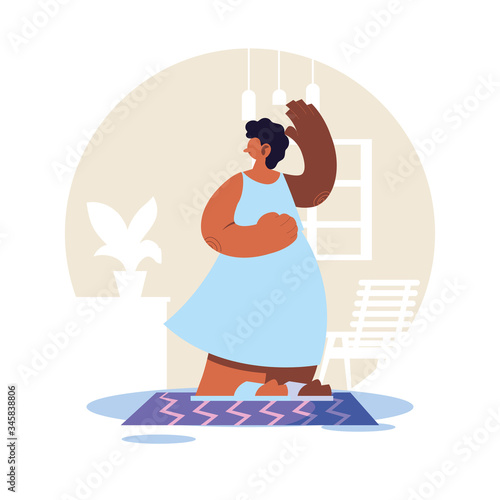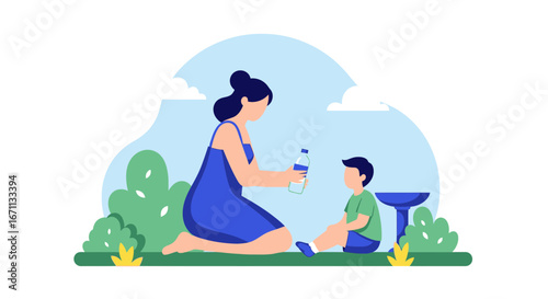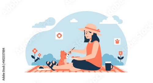 Ospalá máma drží své dítě, zatímco sedí v křesle, ploché vektorové ilustrace. Unavená, vyčerpaná matka se svým novorozeným dítětem a kočičím mazlíčkem.