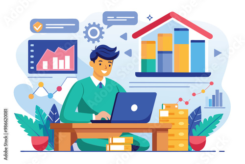 Inteligentní dobytek farma, ploché vektorové ilustrace. Automatizovaná mléčná farma. Automatický dojicí stroj na krávy. Internet věcí, bezdrátové dálkové ovládání kvality, moderní technologie inteligentního zemědělství v zemědělství.