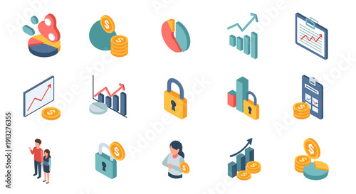Inteligentní zemědělství, biotechnologie, zemědělská technologie, izometrická sada ikon, vektorová izolovaná ilustrace. Inteligentní inteligentní Kombajn, stolní skleník. Laboratoř pro testování GMO, zemědělský dron.