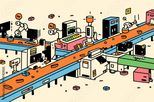 Robotická zemědělská technologie vector. Kuřecí inteligentní inkubátor ilustrace. Automatizovaná továrna na růst domácí drůbeže a sběr vajec s robotickým pracovníkem