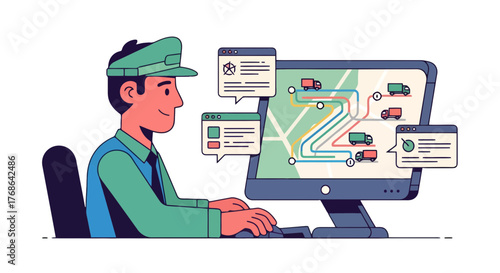 Inteligentní rybí farma, ploché vektorové ilustrace. Automatické pěstování ryb. Internet věcí, bezdrátový systém dálkového ovládání, moderní technologie inteligentního zemědělství v zemědělství.