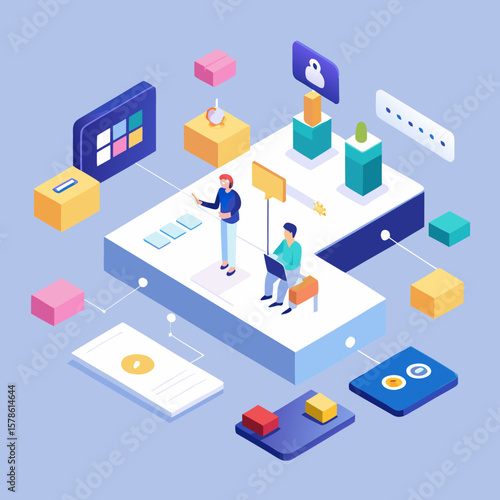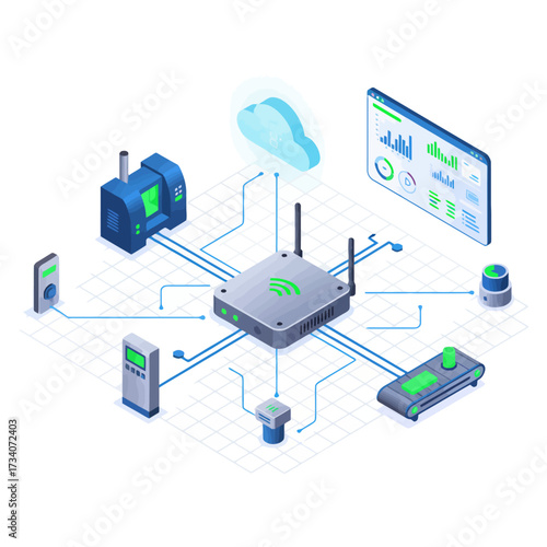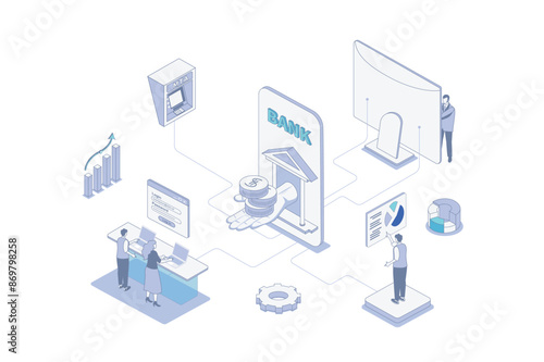 Inteligentní domácí a kancelářský bezpečnostní systém izometrický vývojový diagram, vektorové ilustrace. Bezpečnostní stráž, ruka, smartphone, Kamera pro sledování videa, zámek, štít. Bezdrátový systém domácí ochrany.