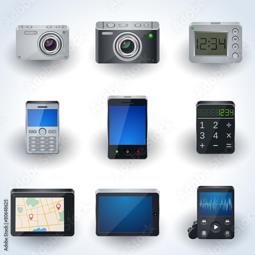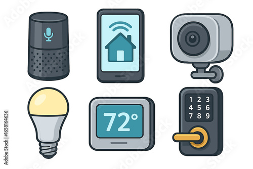 Ikona inteligentního domácího systému. Realistický vektorový ovládací panel, snímač termostatu, zásuvka, žárovka, smartphone, Kamera pro sledování videa, technologie a aplikace pro sadu vzdálené správy