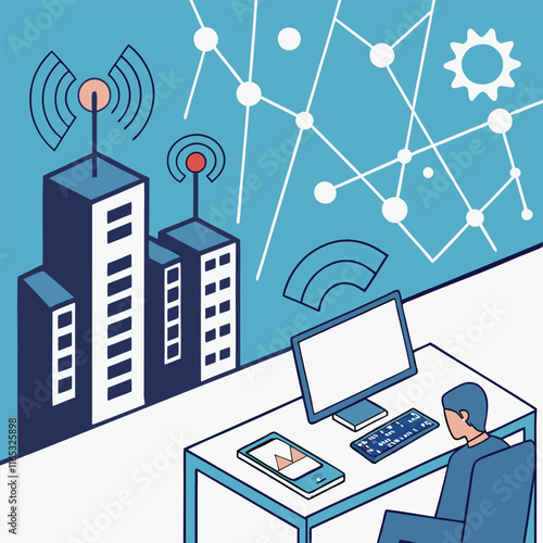 Infografika inteligentního zemědělství, plochá vektorová izometrická ilustrace. Inteligentní ekologická farma využívající technologie AI a čistou energii produkovanou větrnými turbínami, solárními panely. AI v zemědělském průmyslu.